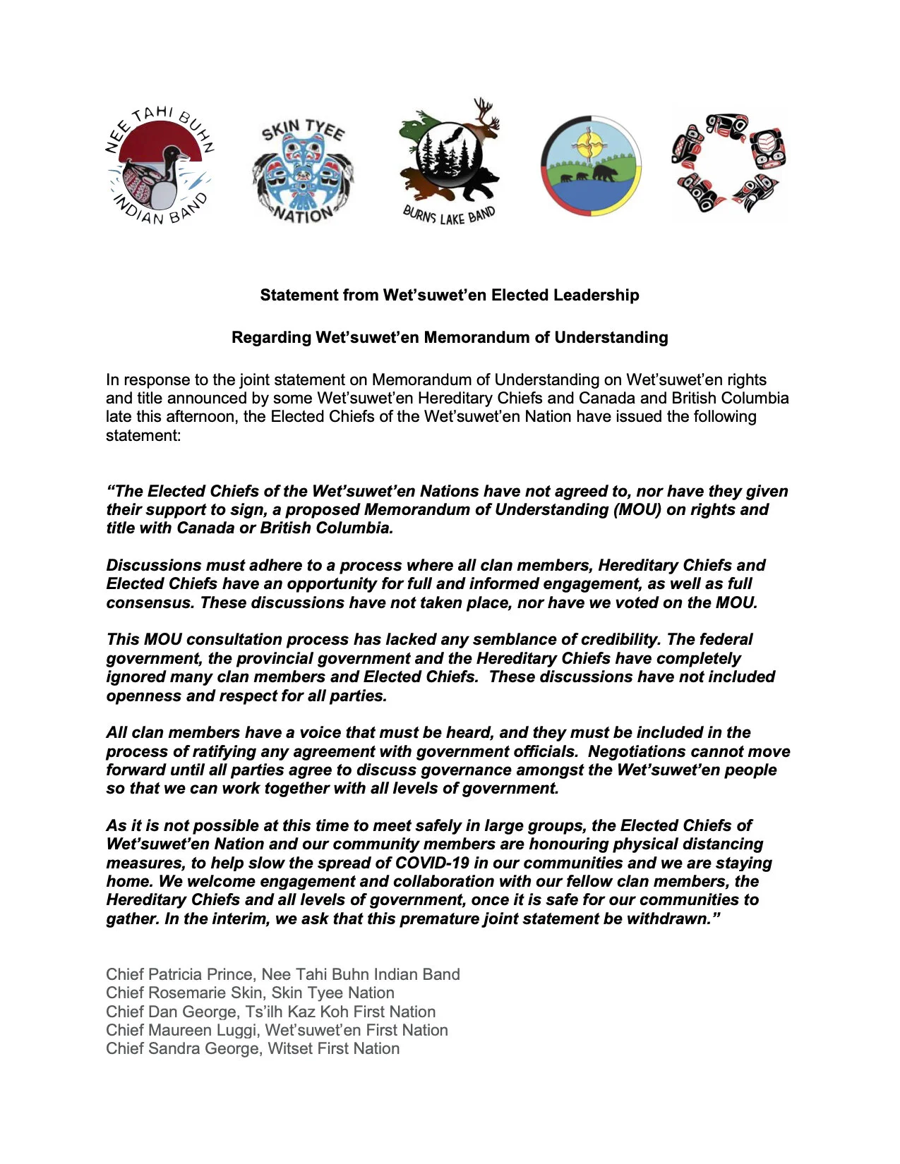 As Elected Leaders, we continue to work with Coastal GasLink to ensure they are respecting our people, our land, and our culture as we move forward with this project.